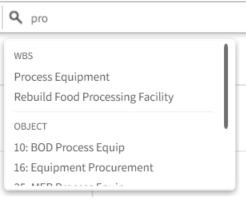 To search for an object, click in the Search box on the Global Toolbar (keyboard shortcut: CTRL+F) and type as desired.